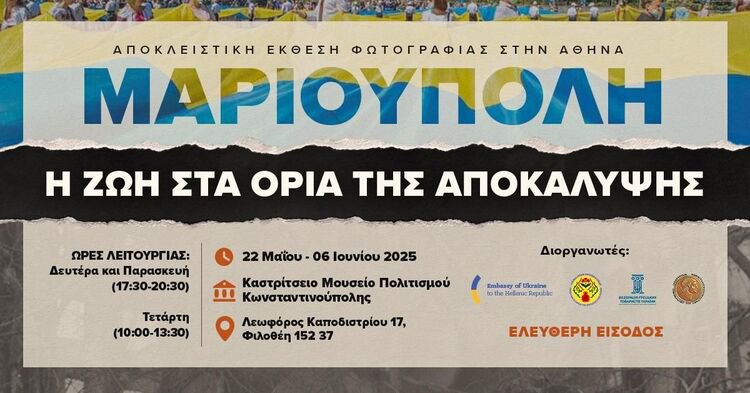 22 травня в Афінах відкриється фотовиставка «Маріуполь. Життя на межі апокаліпсиса», присвячена українському місту Маріуполю — найбільшому осередку грецької культури в Україні, що зазнало катастрофічних руйнувань під час російської облоги. Про це на своїй сторінці у фейсбуці пише Спілка греків України у Греції.