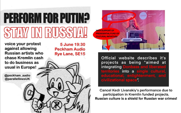 У відповідь на скасування концертів, учасниця музичного колективу "Кедр Ліванський” Яна Кєдріна заявила, що її виступи скасовують "за національність і за те, що я живу в Росії. За те що виступаю тут, і за те що не кинула свою країну". Однак активісти наголошують, що причиною скасування є не національність, а відсутність чіткого засудження російської агресії, виступи на заходах, спонсорованих російським урядом та в клубі Mutabor, що належить російським олігархам, наближеним до Путіна. Зокрема, йдеться про заходи, які фінансував російський Президентський фонд підтримки культурних ініціатив, який зосереджується на військовій пропаганді для молоді. На офіційному сайті цього фонду його проєкти описують як такі, що спрямовані на інтеграцію окупованих росіянами територій України “в єдиний культурний, освітній, просвітницький та цивілізаційний простір”.