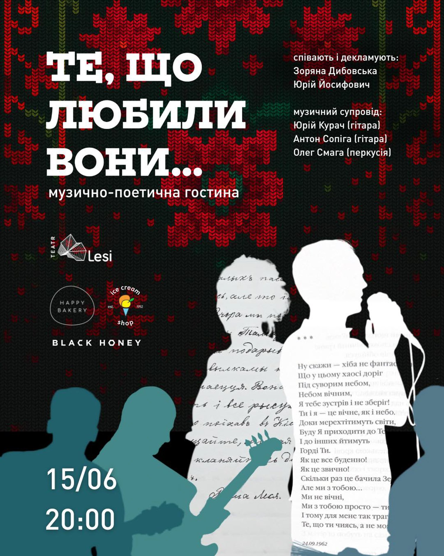 15 червня колектив запрошує на гастровечір «Те, що любили вони», де «слова мають смак, а пісні — глибину», який відбудеться у дворику Театру Лесі. Подія поєднає мистецтво і гастрономію, аби, за задумом творців, українські письменники стали ближчими, а глядачі пережили їхні історії — наживо, смачно, емоційно. У першій частині публіка скуштує триповерхову каву Івана Франка, домашній кекс родини Косачів, вино «Симоне» від Василя Симоненка й улюблене ожинове морозиво патронеси театру Лесі Українки. У другій частині побачить музично-поетичну виставу, яка розпочнеться із заходом сонця. На глядачів чекає жива програма від Зоряни Дибовської, засновниці гурту YAGODY, Юрія Йосифовича, виконавця і дослідника українських пісень і музикантів Олега Смаги (перкусія), Антона Сопіги та Юрія Курача (гітари). Це буде вечір, «де памʼять оживає, а мистецтво перетворюється на досвід — особистий і незабутній».