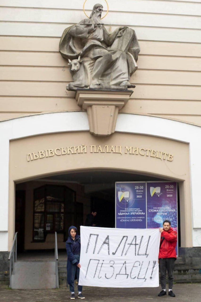 Яскравим прикладом реакції мистецького середовища і супротиву такому використанню експозиційних площ ПМ стала акція Ольги Марусин і Ярослава Футимського в листопаді 2020 року, ніби випадково, на превелике щастя, зафіксована В'ячеславом Поляковим. Спонтанно і ситуативно зроблений на балконі мистецької майстерні SOMA і розгорнутий перед головних входом у ПМ банер відображав погляд молодого покоління митців на це місце, на специфіку його публічної репрезентації, його занедбаності і способу заробляння грошей.