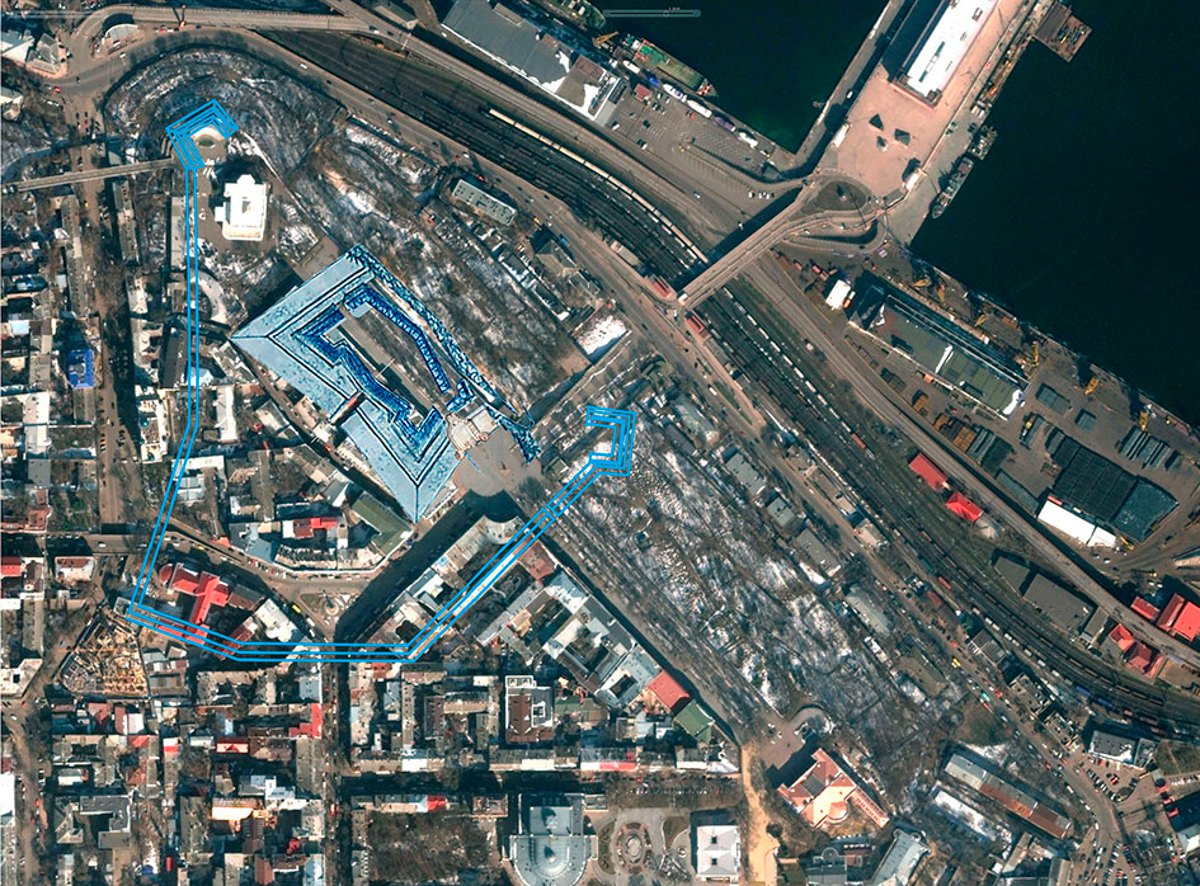 Ми прийшли до того, що замок має бути приблизно у цьому місці, а це означає, що його залишки обов’язково мали бути задіяні у проєкті. Немає сумнівів, що несподівана зміна напрямку гласису пов’язана саме із фундаментами замку, й вони були використані. Більше того ширина гласису збігається з шириною так званого «артилерійського майданчику» замку, направленого у бік моря. Тобто тепер точне встановлення місця розташування замку залежить лише від реконструкції розташування самого цього редуту.