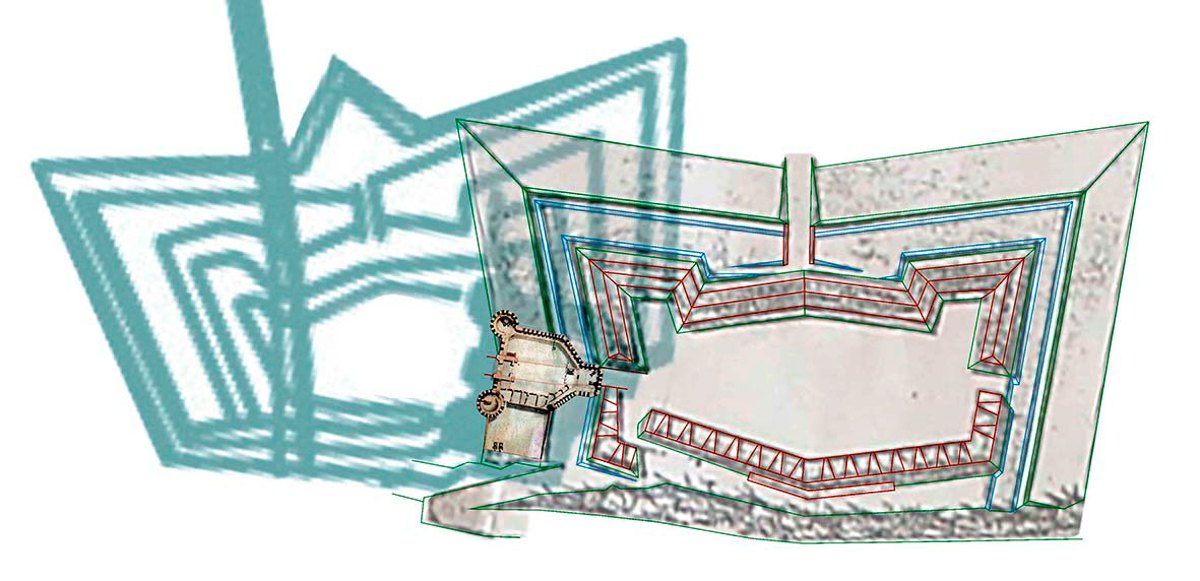 Важливе тут ще зображення нового редуту (він виділений зеленим), у який де Воллан вписав замок. Він типовий для того періоду, й далі займемося ним.