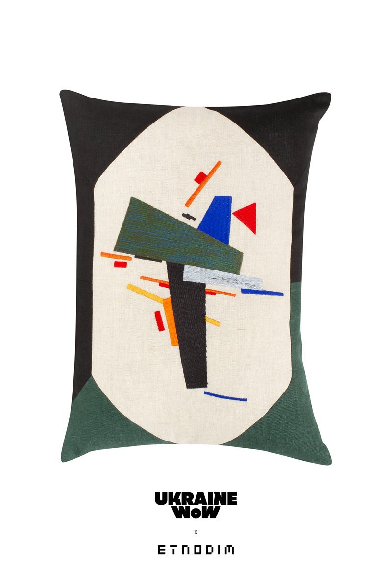 Подушку відтворили ГО Ukraine WOW разом з Etnodim за участі експерток - дослідниці творчості Казимира Малевича Тетяни Філевської, мистецтвознавиці Тетяни Кари-Васильєвої і майстрині художньої вишивки Валентини Костюкової. Завдання проєкту - нагадати про звʼязок Малевича з Україною та вплив українського народного мистецтва на його творчість.