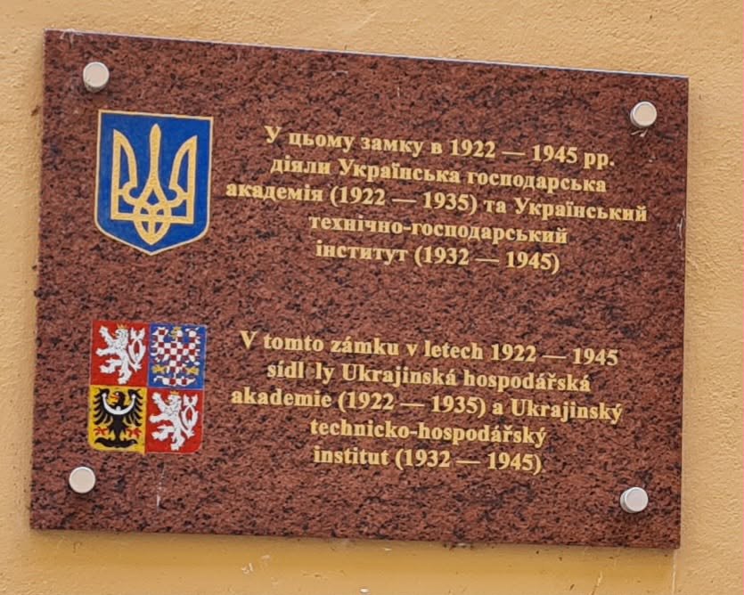 Про це сьогодні нагадує табличка на стіні замку з написом: «У цьому замку в 1922–1945 рр. діяли Українська господарська академія (1922–1935) та Український технічно-господарський інститут (1932–1945)».