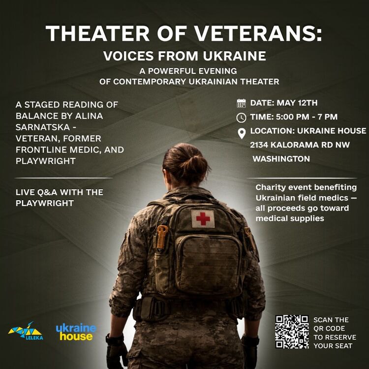 12 травня в Ukraine House у Вашингтоні відбудеться вечір сучасного українського театру,The Theater of Veteran: Voice from Ukraine, що представить перформативне читання п’єси «Balance» авторки Алiни Сарнацької. Про це Ukraine House повідомляє на своїй фейсбук-сторінці.