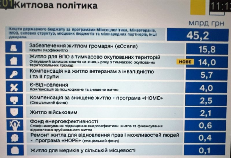 На житлові програми заклали 45 млрд грн, включно з підтримкою ВПО.