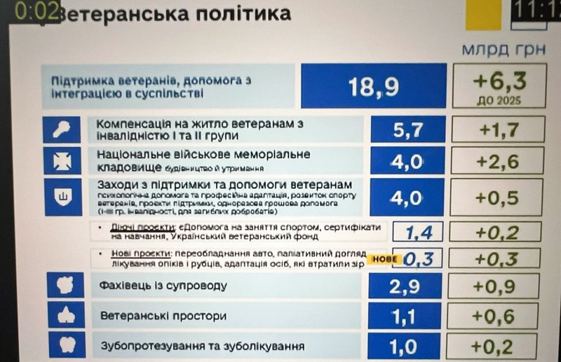 • 4 млрд грн (+0,5 млрд грн) — заходи з підтримки та допомоги ветеранам;