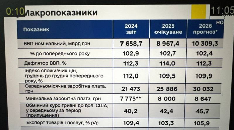 • ВВП: 10,3 трлн грн, що на 1,34 трлн грн більше за прогноз на 2025 рік. У реальному вимірі — +2,4%.