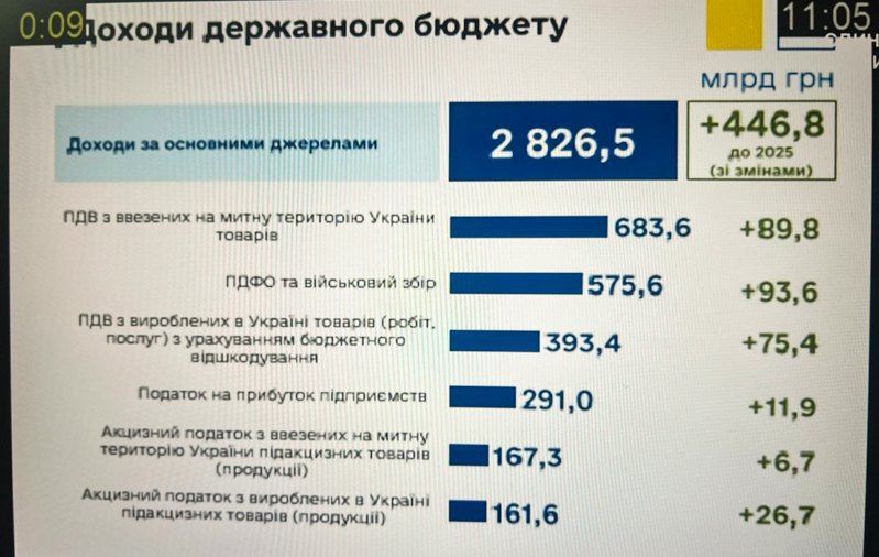 • Доходи: 2,82 трлн грн (+446,8 млрд грн до 2025 року).