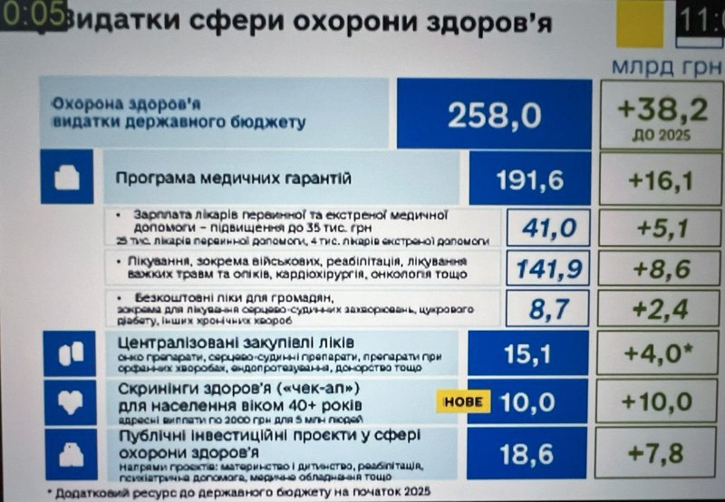 • 18,6 млрд грн — на інвестиційні проєкти у сфері медицини (+7,8 млрд грн до 2025 року).
