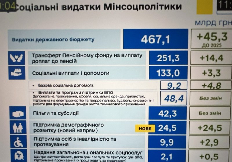 У проєкті бюджету на соціальну сферу передбачили 467,1 млрд грн (+45,3 млрд грн до 2025 року).