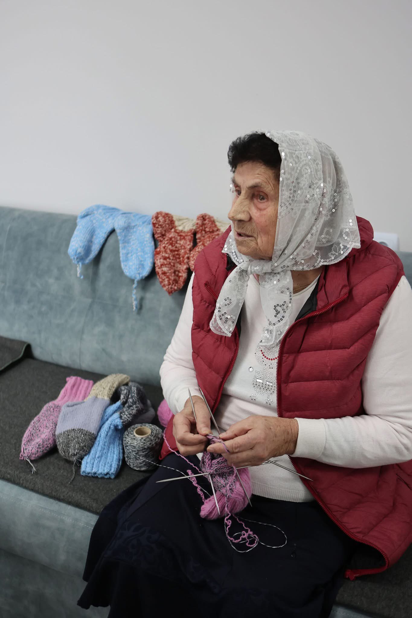 Уже майже 2 роки пані Люба живе у прихистку благодійного фонду «Карітас Чортків». Серед таких самих жінок, які втратили своїх близьких і домівки, вона знайшла там нову родину. Вони підтримують одна одну та разом плетуть теплі шкарпетки для військових.