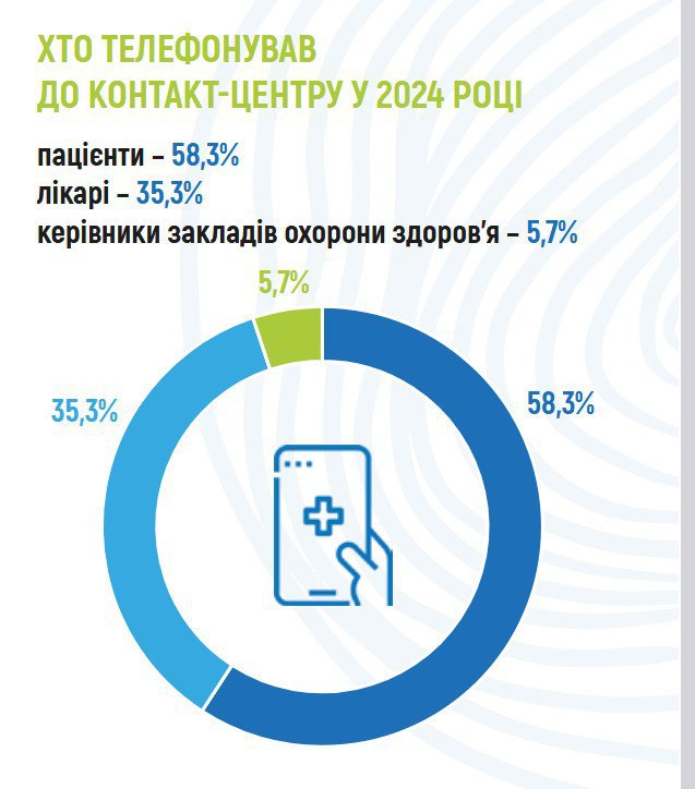 На гарячу лінію телефонували пацієнти, лікарі та керівники медзакладів. Найбільше дзвінків — 58,3% - надійшло від пацієнтів.