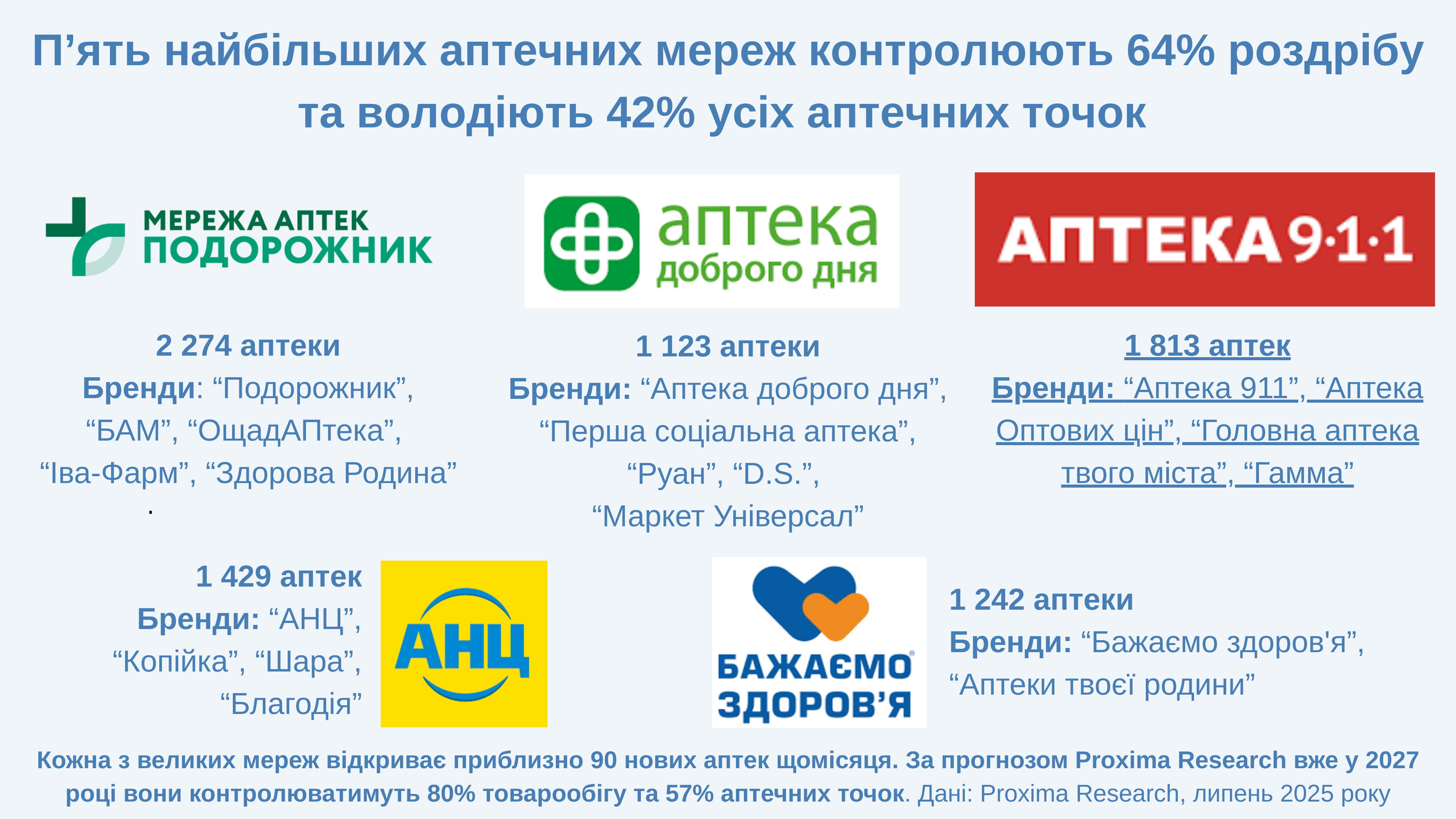 «З якогось моменту вони почали нарощувати мережі. Декілька торгових марок можуть належати до однієї мережі і щоб захоплювати ринок, вони можуть відкриватися навіть поруч з іншою аптекою», — пояснює вона. Якщо аптека може забезпечити дистриб’ютору продажі у якнайбільшій кількості населених і аптечних пунктів, на таку пропозицію їй і умови дадуть вигідніші. Тож частка мережевих аптек зростає, а маленькі одиночні аптеки витискають.
