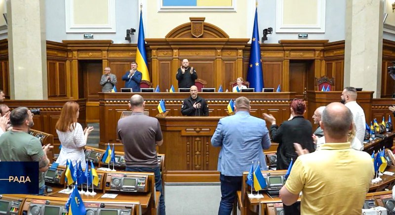 Після чого 261 нардеп з усіх фракцій і груп, крім ЄС, натиснув зелені кнопки за відставку Шмигаля. Звільнений прем'єр під чергові оплески парламентарів обійняв керівництво Ради та свою наступницю Юлію Свириденко.