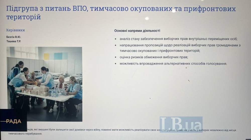 - напрацювання пропозицій щодо реалізації виборчих прав громадян з тимчасово окупованих та прифронтових територій;