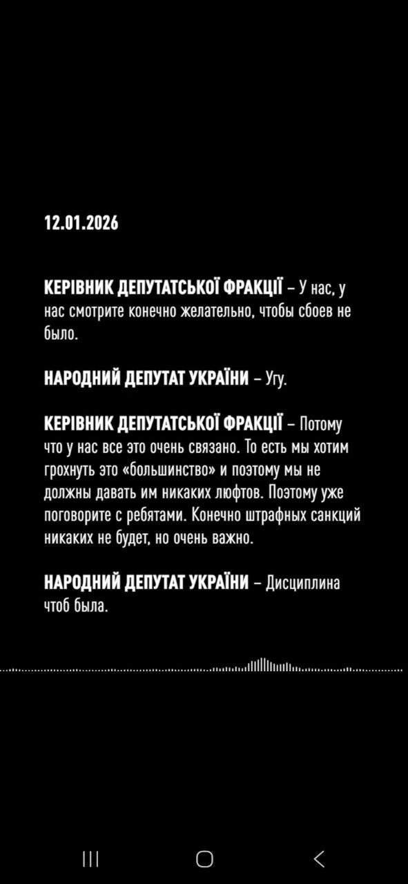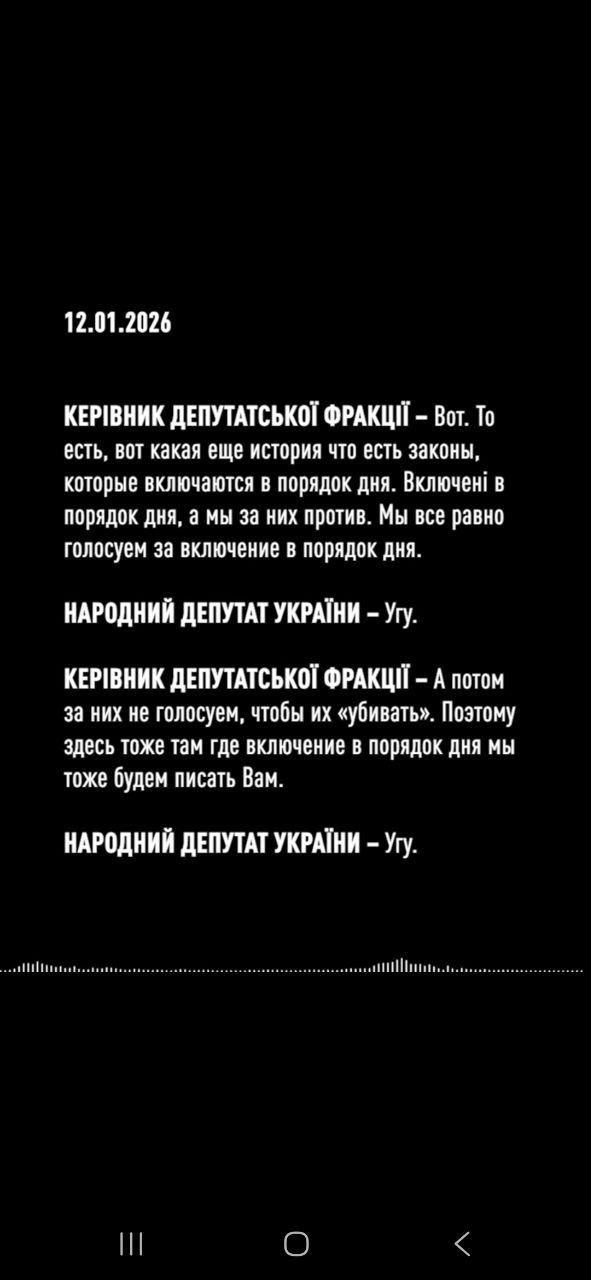 Тут варто згадати, що саме група “За майбутнє” (“Майбах” на парламентському сленгу) дуже часто виручала в голосуваннях фракцію “Слуга народу”, якій після останніх підозр НАБУ і САП п’ятьом депутатам-хабарникам вкрай складно знайти голоси. (Станом на 14 січня 2026 року фракція формально налічує 229 депутатів — Ред.)