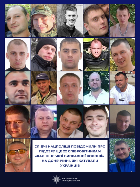 Серед підозрюваних — начальники оперативних підрозділів, чергові помічники начальника установи, начальники військових нарядів, молодші інспектори відділу безпеки та інші посадові особи, які виконували злочинні накази окупаційної влади та координували побиття, катування і примус до виконання примусових робіт.
