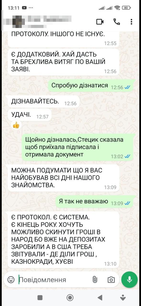 Окрім грошей для “людей у Києві”, адвокат ще й брав щомісяця за свої послуги 25 тисяч гривень. Зустрічався з потерпілою у ресторанах, де її коштом «відпочивав» на кілька тисяч гривень. “Правник” ще й пропонував жінці скласти на нього заповіт, щоб у разі її смерті діти не посварилися через гроші.