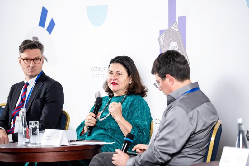 Очільниця Представництва ЄС в Україні Катаріна Матернова зазначила, що коли вона вперше приїхала в Україну два роки тому, “я тоді казала своїм друзям і колегам, що процес вступу до ЄС ‒ це не спринт. Це ‒ марафон… 20 років тому я працювала в Словаччині під час її вступу в ЄС, і процес переговорів був нудним. я б навіть процитувала Радослава Сікорського, який казав, що це — принизливо для країни, коли клерки середньої ланки з Брюсселя приїдуть і скажуть: "Це має бути так або так". Тож я повністю розумію розчарування, що ми повинні бути далі, ніж ми є зараз. Ми знаємо, що в середині 27-ми (членів ЄС) є блокування, яке нам потрібно подолати, але це ‒ не блокування самих реформ. Я знаю, що це не відповідь, але ЄС працює над пошуком консенсусу".
