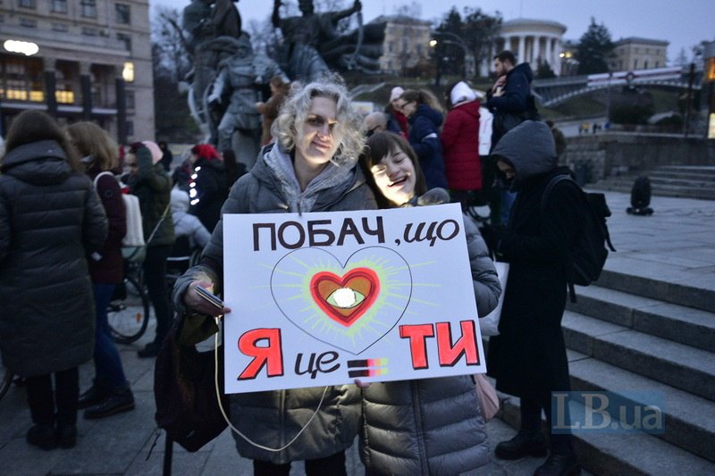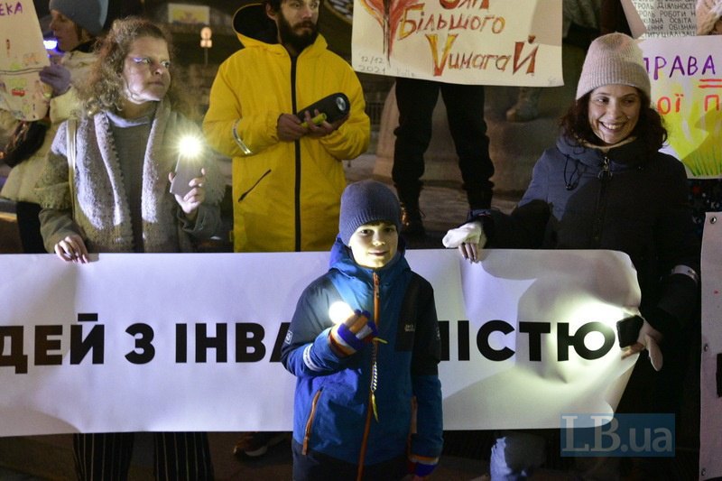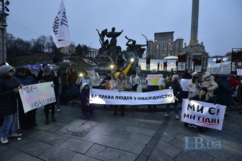 Учасники акції прийшли з ліхтариками і вмикали світло на мобільних телефонах, щоб “підсвітити права людей з інвалідністю в Україні”.
