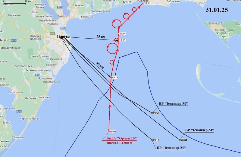 31 січня росіяни навмисно ударили по історичному центру Одеси трьома балістичними ракетами "Іскандер-М". У публічному просторі з’явилась інформація, що удар "балістикою" нібито коригував російський безпілотник "Орлан-10", і удару можна було уникнути, знищивши дрон.