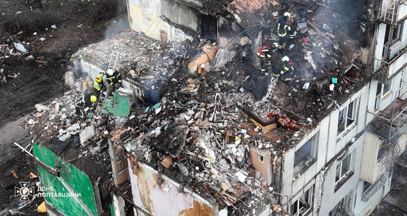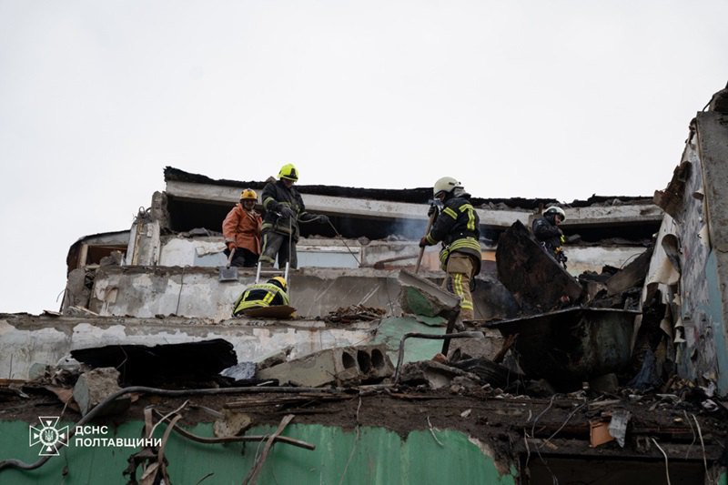 У Полтаві завершені аварійно-рятувальні роботи на місці зруйнованої внаслідок ракетного удару росіян п'ятиповерхівки.