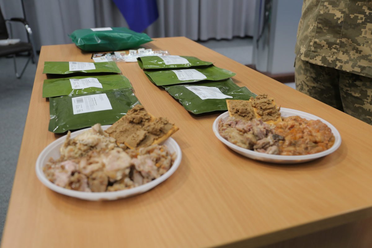 Там 14 раціонів, вони всі прописані в технічних специфікаціях. На один раціон ідуть сніданок, обід, вечеря — п’ять страв. Сніданок — це різна каша з м’ясом або картопля. Обід — перша страва, друга. Вечеря — каша й окремо а-ля тушкованка, але в реторт-пакеті.
