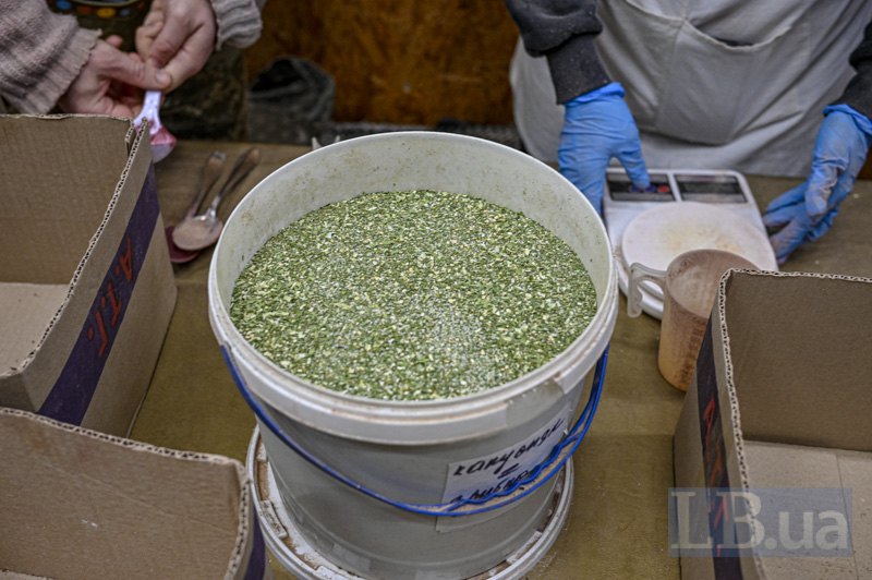 Також масово закуповують горохові та вівсяні пластівці, сушену паприку, спеції. Водночас, гриби та зелень (петрушку, селеру, кріп, зелену цибулю) інколи передають підприємці, котрі їх вирощують. Так само і мед - його пасічники віддають як не відерцями по літру, так трьохлітровими банками чи відрами.