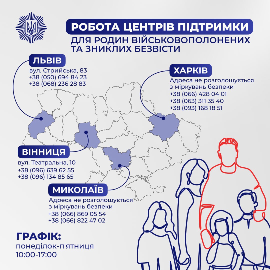 У Львові, Миколаєві, Вінниці та Харкові сьогодні, 3 квітня, розпочали роботу Центри підтримки родин військовополонених і зниклих безвісти, де громадяни зможуть отримати допомогу та необхідну інформацію.