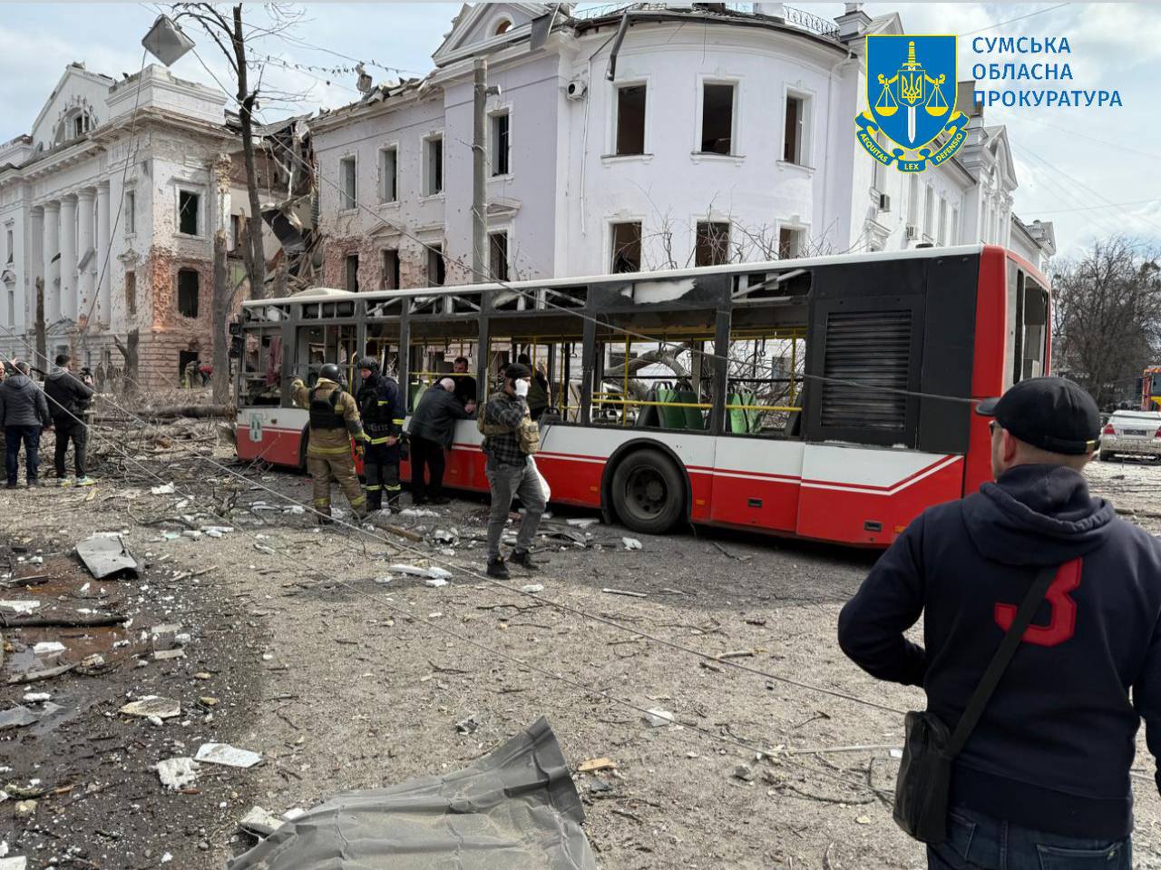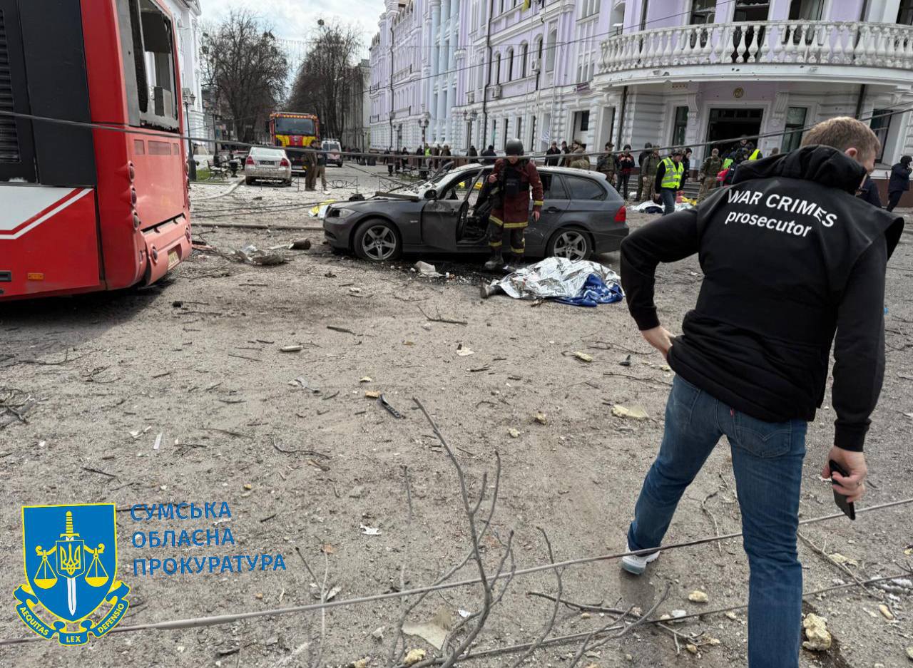 Оновлення. Станом на 12:10 відомо про 21 загиблого та 34 поранених, з них 5 дітей, унаслідок ракетної атаки по центру міста Суми.