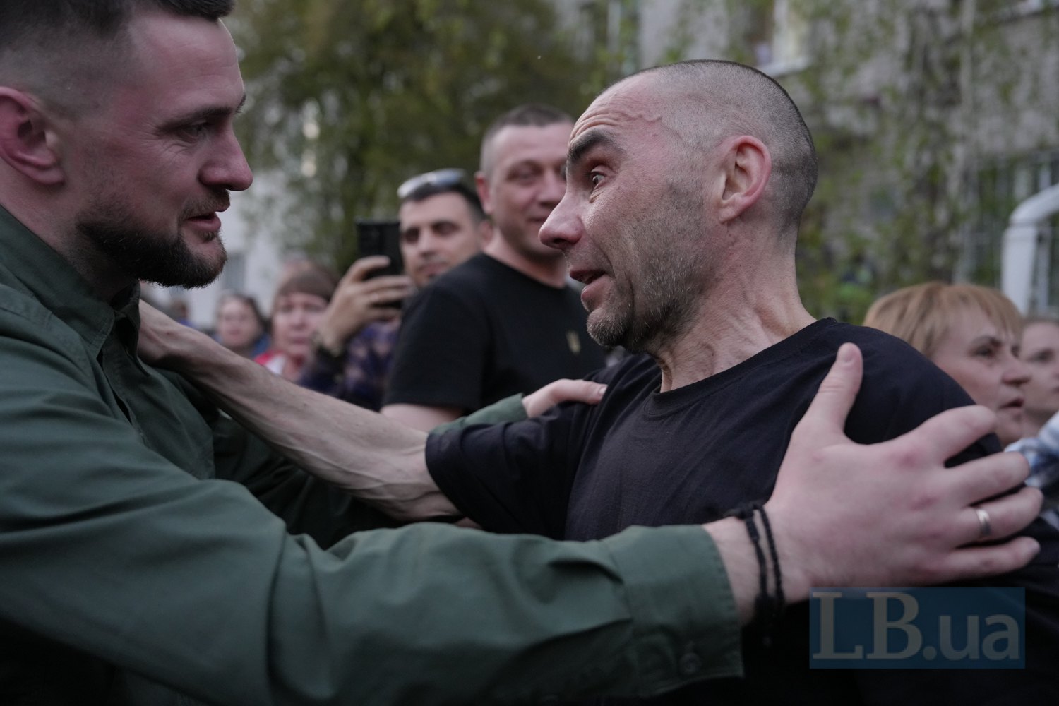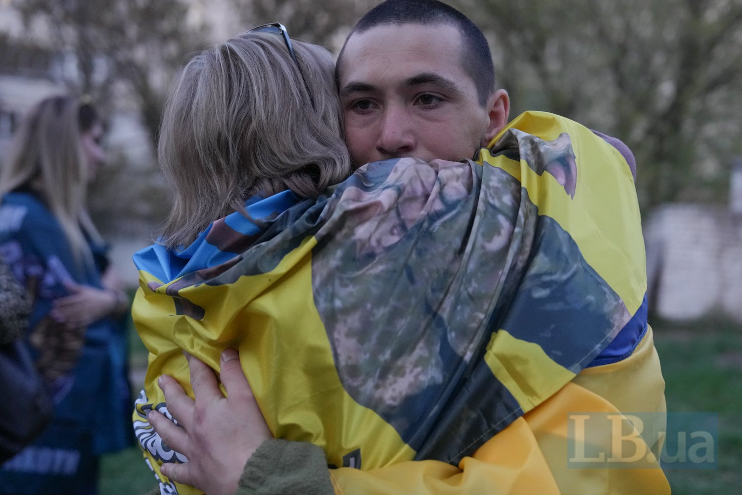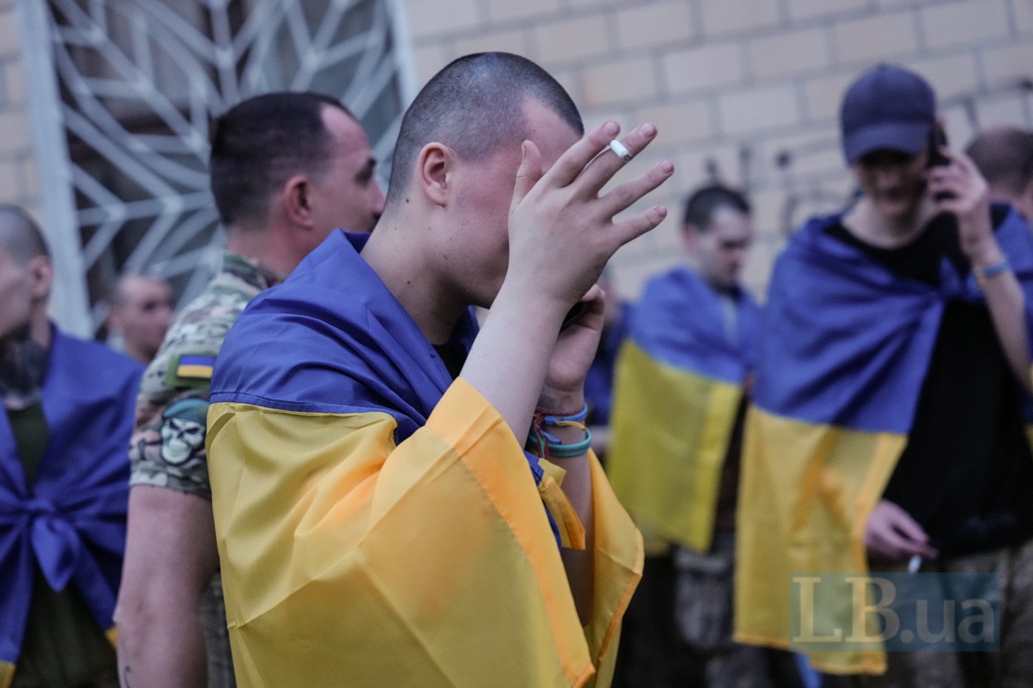 "Я витримав, мам. Я витримав...", — говорить звільнений із полону юнак, дивлячись у смартфон. Він відійшов від натовпу подалі. Бо говорить, ледве стримуючи сльози.