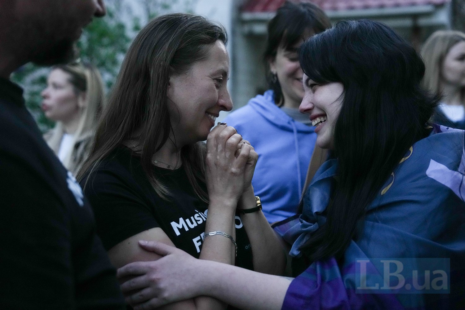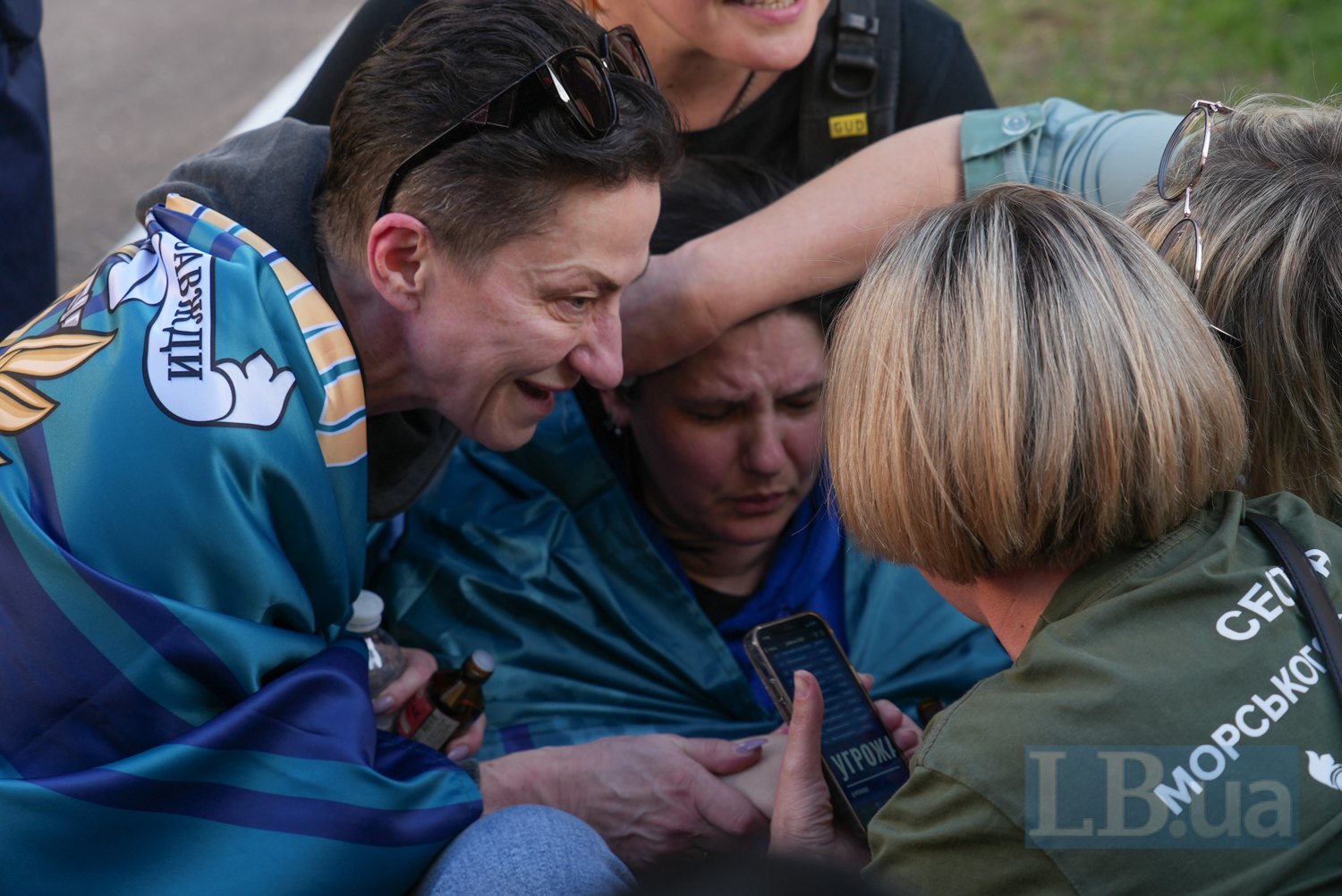 "Знайшли! Знайшли!" — вигукують кілька жінок і дівчат. Вони кидаються обіймати високого худого хлопця з жовтосинім прапором на плечах. "Твоя мамочка так тебе чекала!" — каже одна з них і починає набирати когось по телефону.