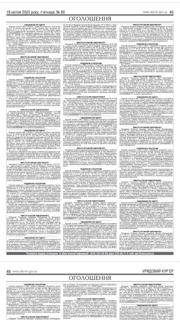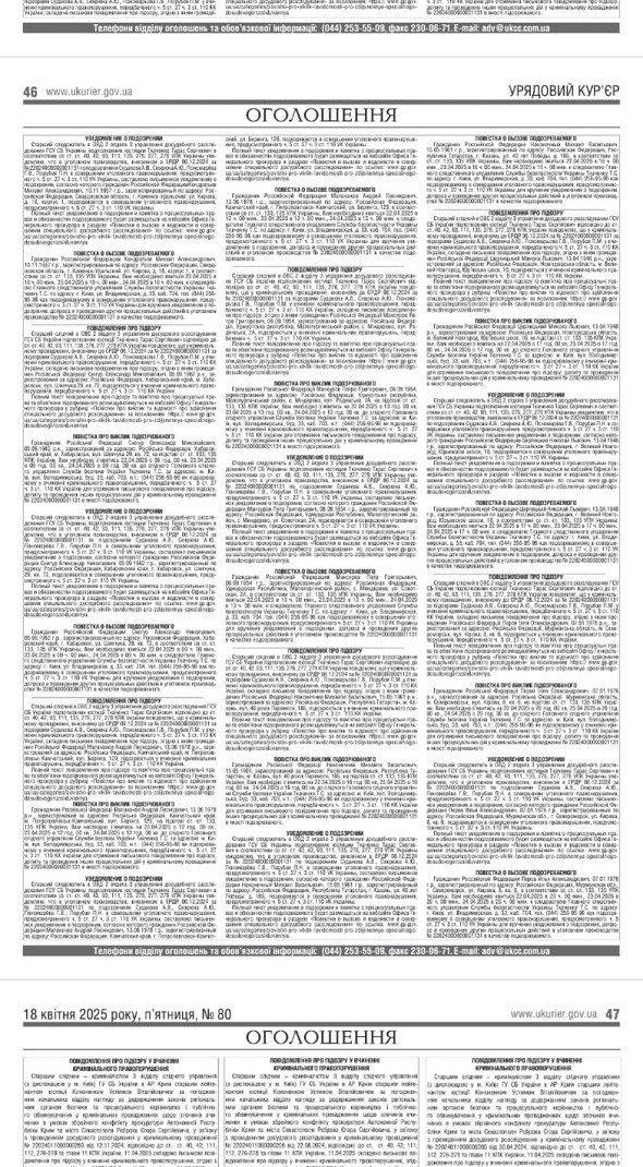 Зазначимо, що повідомлення про підозри були опубліковані в "Урядовому кур'єрі" 18 квітня.