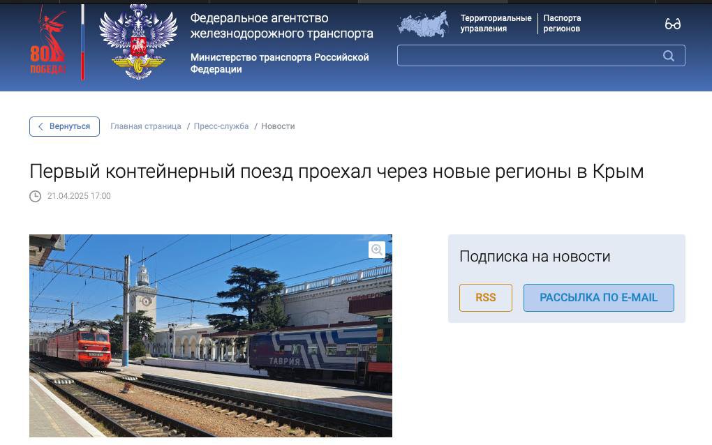 Росія запустила до Криму через окуповані території перший контейнерний потяг. Він вирушив зі Свердловської залізниці і прибув до Севастополя менш ніж за п'ять днів.
