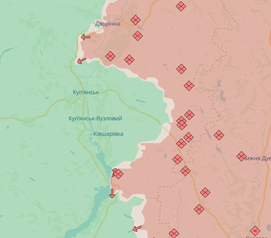 На Куп'янському напрямку противник з кінця осені докладає зусиль, щоб розширити свої плацдарми на західному березі річки Оскіл (їх там чотири) і намагається в такий спосіб розширити свою зону контролю до кордону з імперією вуличних сортирів, одночасно охопити Куп'янськ з півночі і, як пощастить, з північного заходу. Цим мріям суттєво завадили дії Сил оборони в Курській і Бєлгородській областях, адже 6-ту армію противника посадили на розтяжку від Борової до Суджі й через цю гімнастику немає кількості військ, потрібної, щоб досягти успіху принаймні на якомусь напрямку.