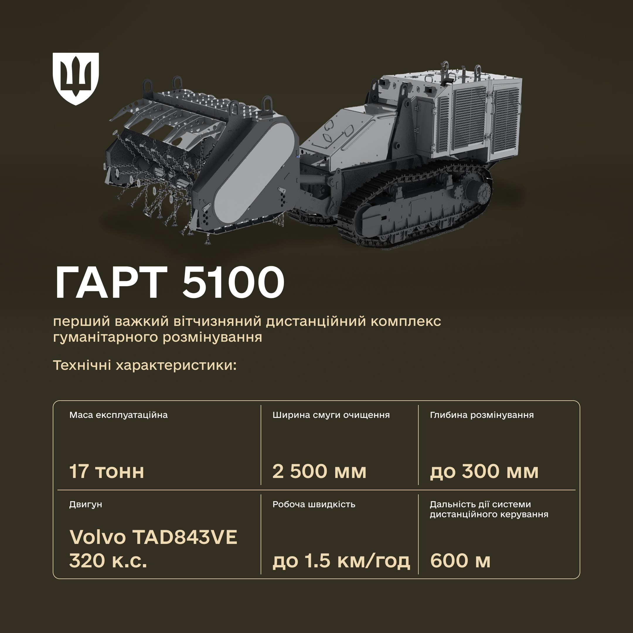 Машина «ГАРТ 5100» – перший важкий дистанційний комплекс розмінування виробництва української інженерної компанії XTI Engineering, який пройшов процедуру державної сертифікації та вже готується до серійного виробництва.