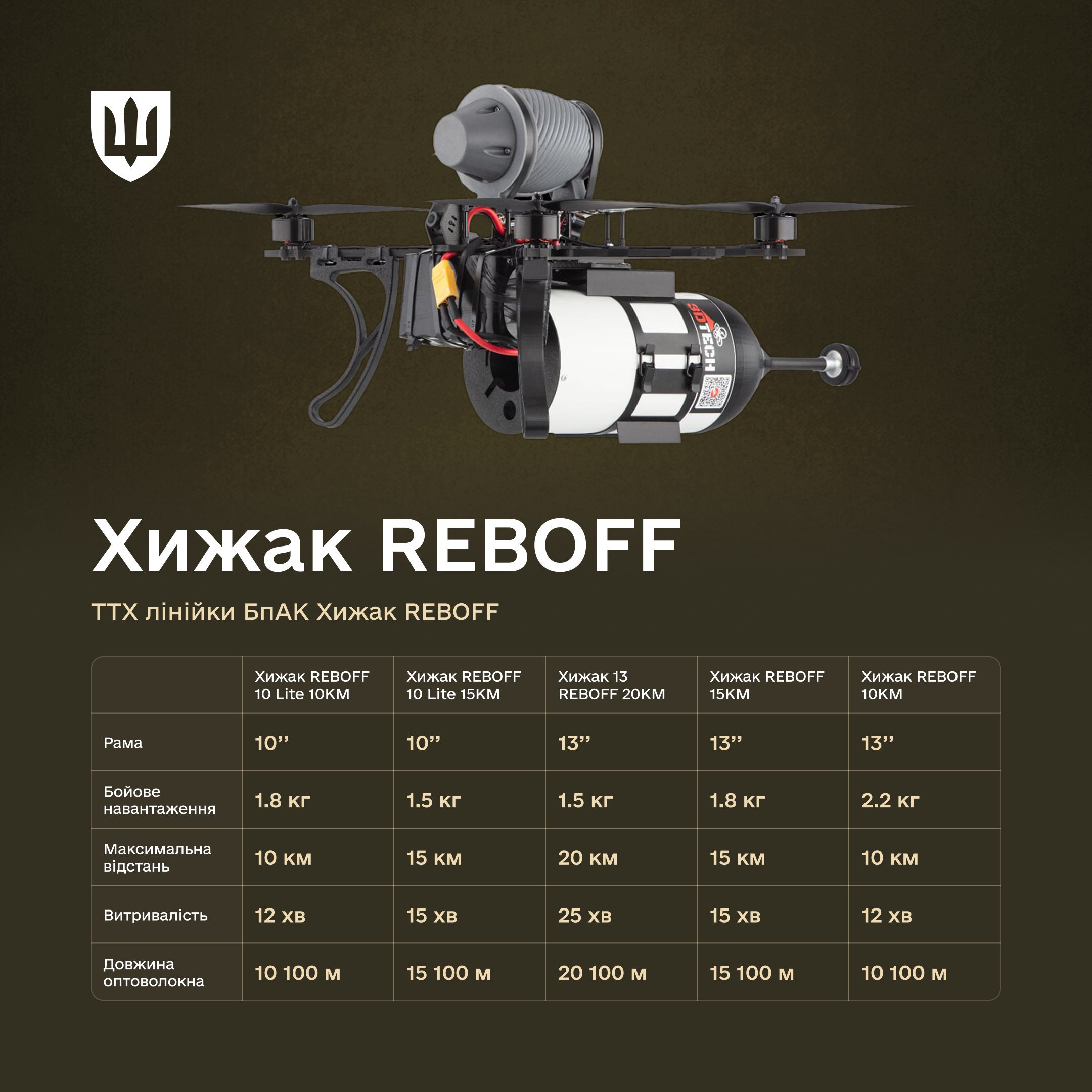Як зазначає оборонне відомство, компанія 3DTech – перший вітчизняний розробник, який успішно завершив процедуру кодифікації лінійки оптоволоконних безпілотних авіаційних комплексів Хижак REBOFF у Міністерстві оборони України. Ці дрони мають котушки з оптоволокном довжиною від 10 до 20 км, що дозволяє ефективно їх використовувати залежно від потреб бойових підрозділів.