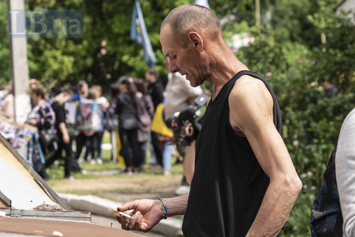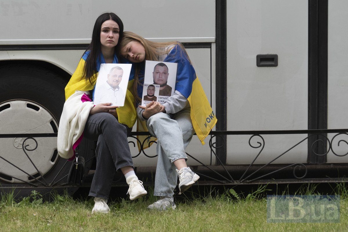 Тим часом мама плаче, обіймає Віктора і цілує його в худі руки. Уже за кілька хвилин через ці руки пройдуть десятки фото — рідні зниклих безвісти несуть портрети своїх родичів.