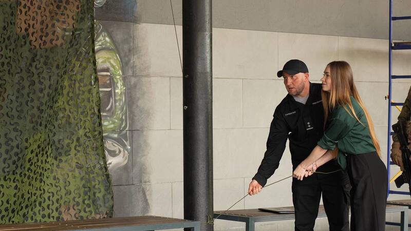Автор роботи ‒ художниця Діана Сорокіна, в чиєму доробку більше сотні розписаних стін у різних містах України. “Для мене честь створити цей мурал, ‒ каже Діана. ‒ Тепер кожен, хто вирушатиме в подорож з Центрального автовокзалу столиці, зможе на мить зупинитися і відчути, що захист України ‒ це справа тих, хто діє рішуче й без страху”.