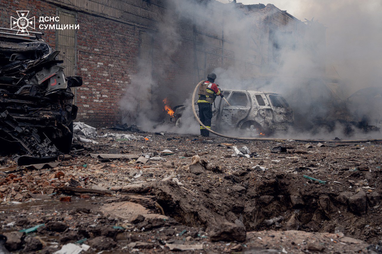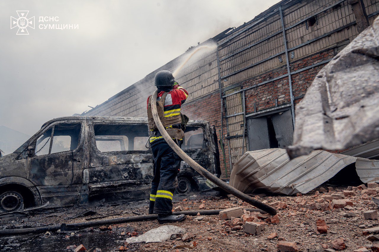 Уранці 4 червня російська армія завдала чергового удару по цивільній інфраструктурі міста Суми. Пошкоджені складські приміщення і цивільні авто.