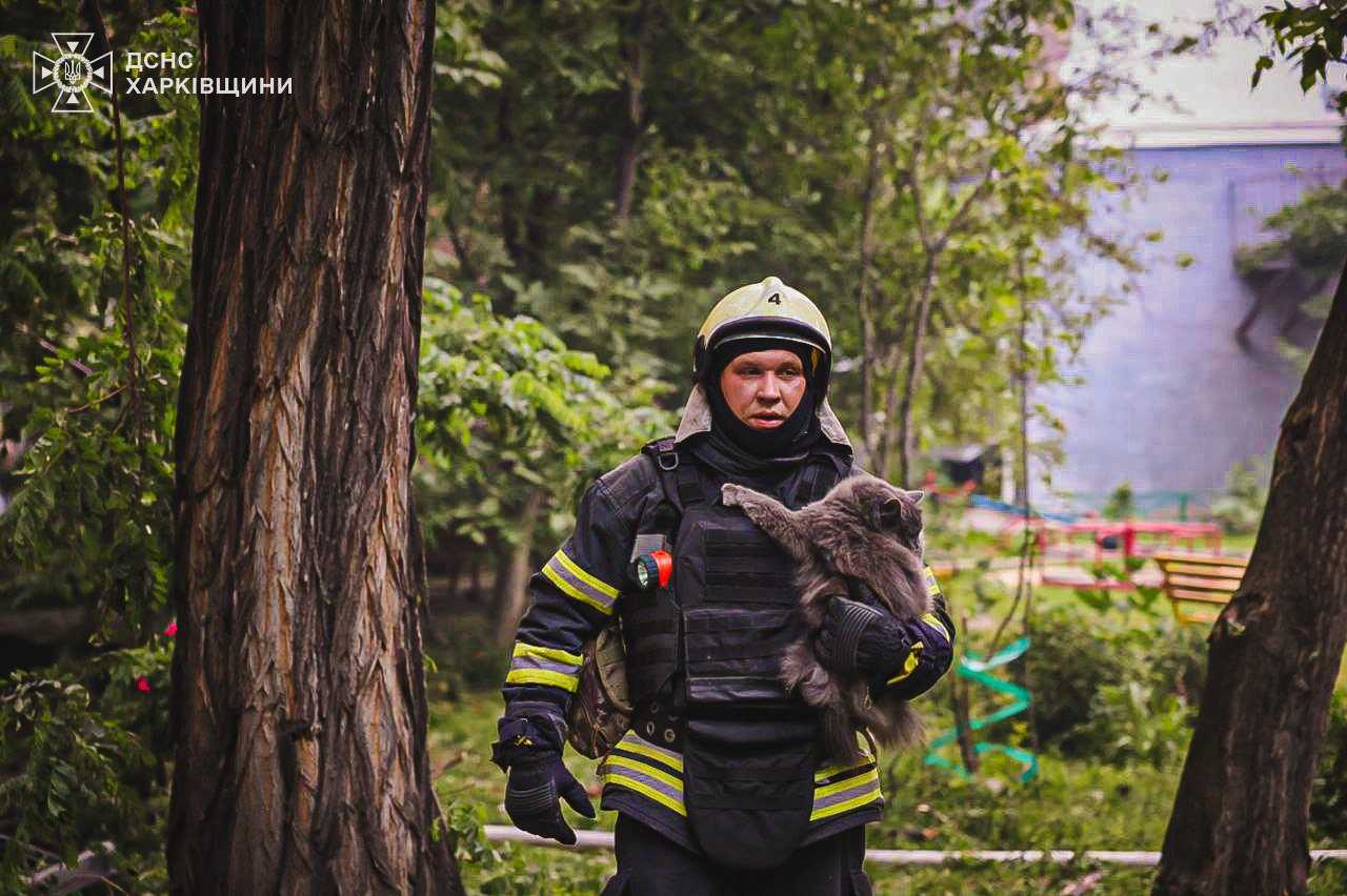 У Основ'янському районі ворог влучив у багатоповерховий житловий будинок, сталося займання. У будинку в центрі міста горять квартири з 6-го по 9-ий поверх, під завалами у квартирах перебувають люди.