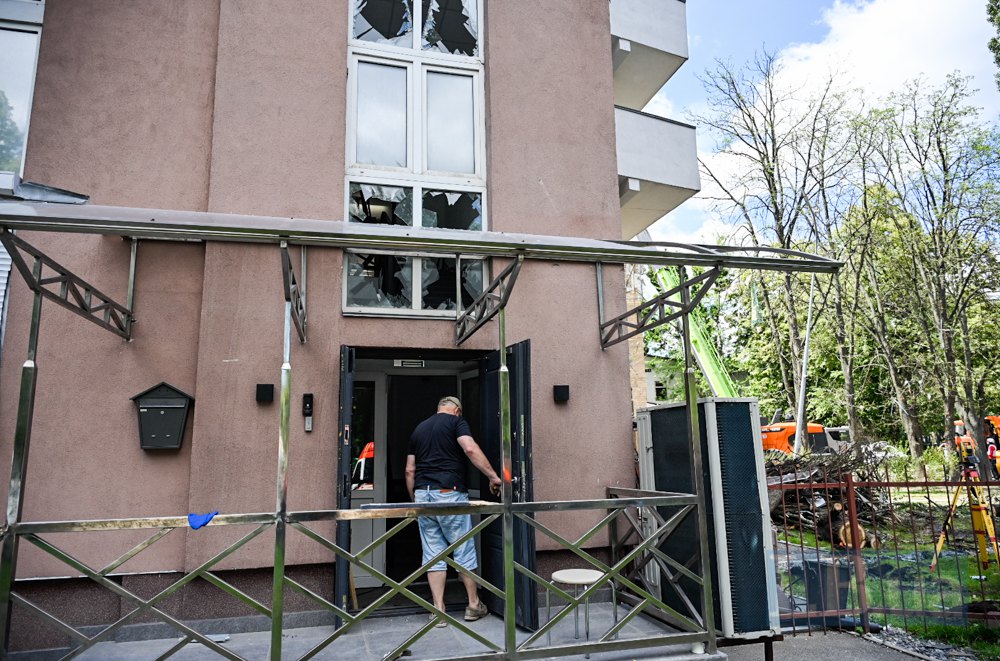За інформацією Ткаченка, в Голосіївському районі пошкоджено бізнес-центр, а в Деснянському в дворі будинку – вирва.
