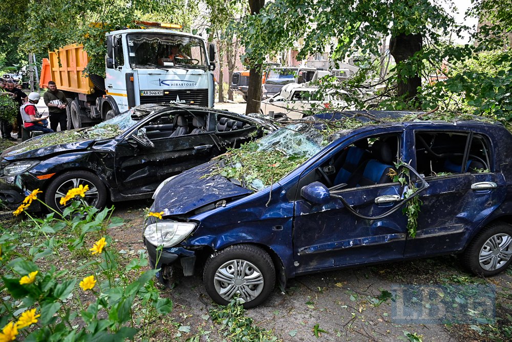 У Солом’янському та Голосіївському районах руйнувань зазнали бізнес-центри та автомобілі, а в Подільському внаслідок атаки ворога вибиті вікна у житлових багатоповерхових будинках.