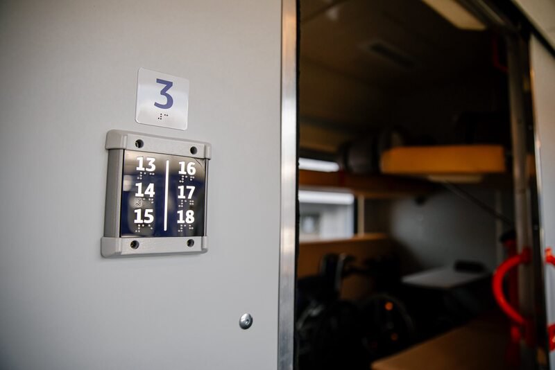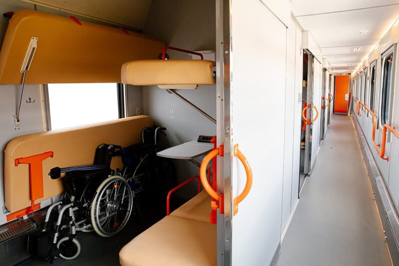 Вагон повністю перебудували враховуючи потреби пасажирів на кріслі колісному. У ньому є чотири збільшені купе: кожне розраховане на 2 пасажирів з інвалідністю та 2 супроводжуючих.
