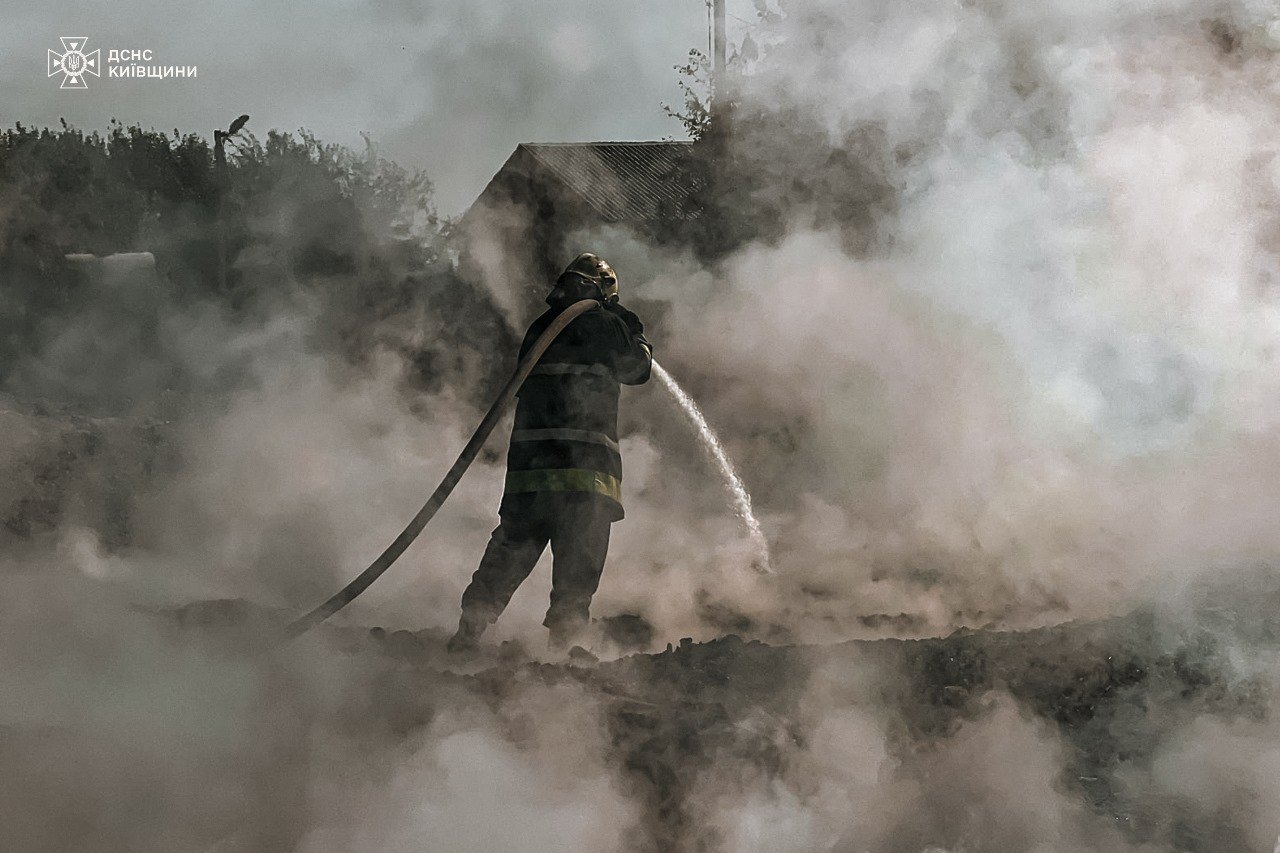 На Київщині двоє людей постраждали від атаки росіян, у Броварському районі дронова атака спричинила пожежу на підприємстві в селі Требухів, площею 8000 кв. м. Тривога в області тривала більше 7 годин.