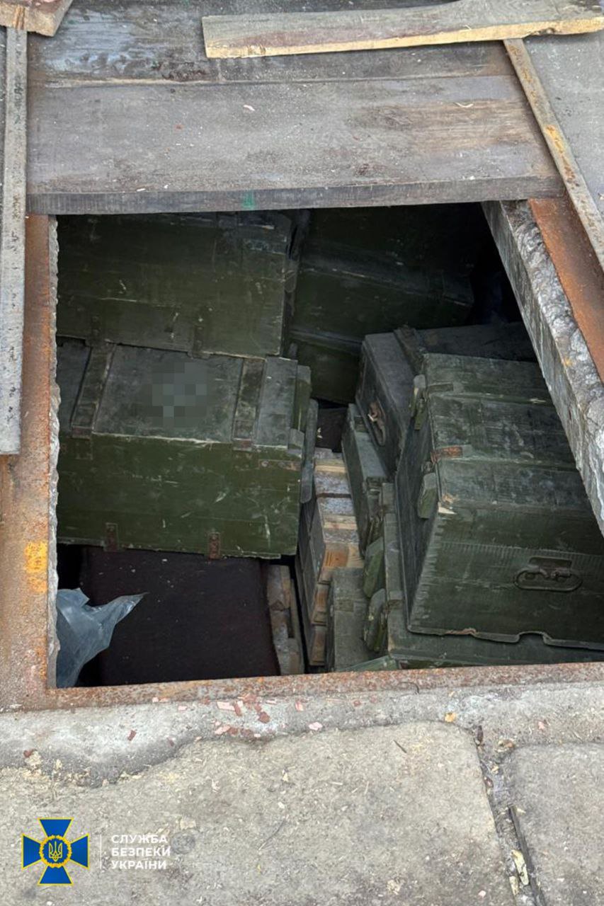 Під час обшуків у цьому приміщенні співробітники СБУ та ДБР виявили та вилучили значну кількість боєприпасів, зокрема набої до стрілецької зброї, ручні гранати, протитанкові міни, а також декілька РПГ та гранати до них.