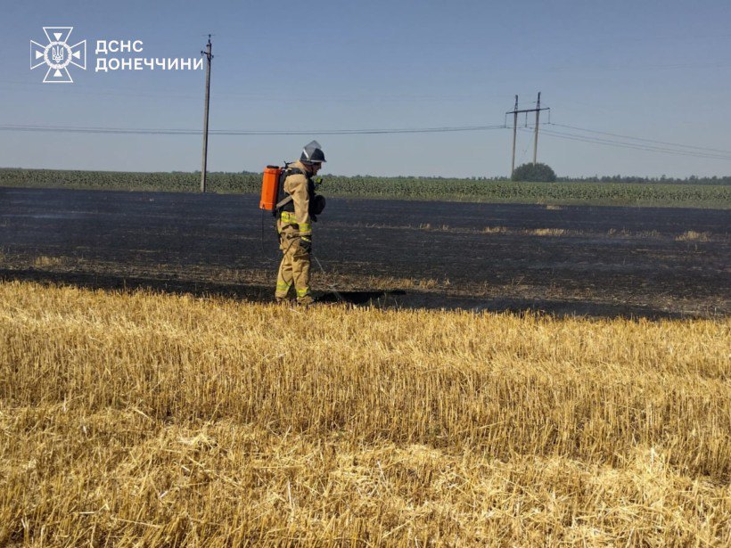 Через російські обстріли на Донеччині за добу вигоріло 17 гектарів поля пшениці і стерні на площі 1,5 гектара.