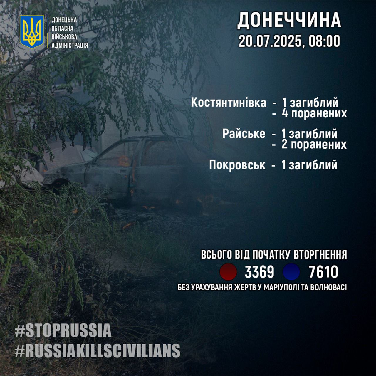 За добу 19 липня росіяни вбили та поранил 9 мирних жителів Донецької області.