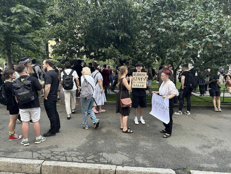 У Києві збір на акцію в акаунті в X оголосив ветеран Дмитро Козятинський. Локація максимально близька до Офісу Президента – Театр імені Івана Франка.